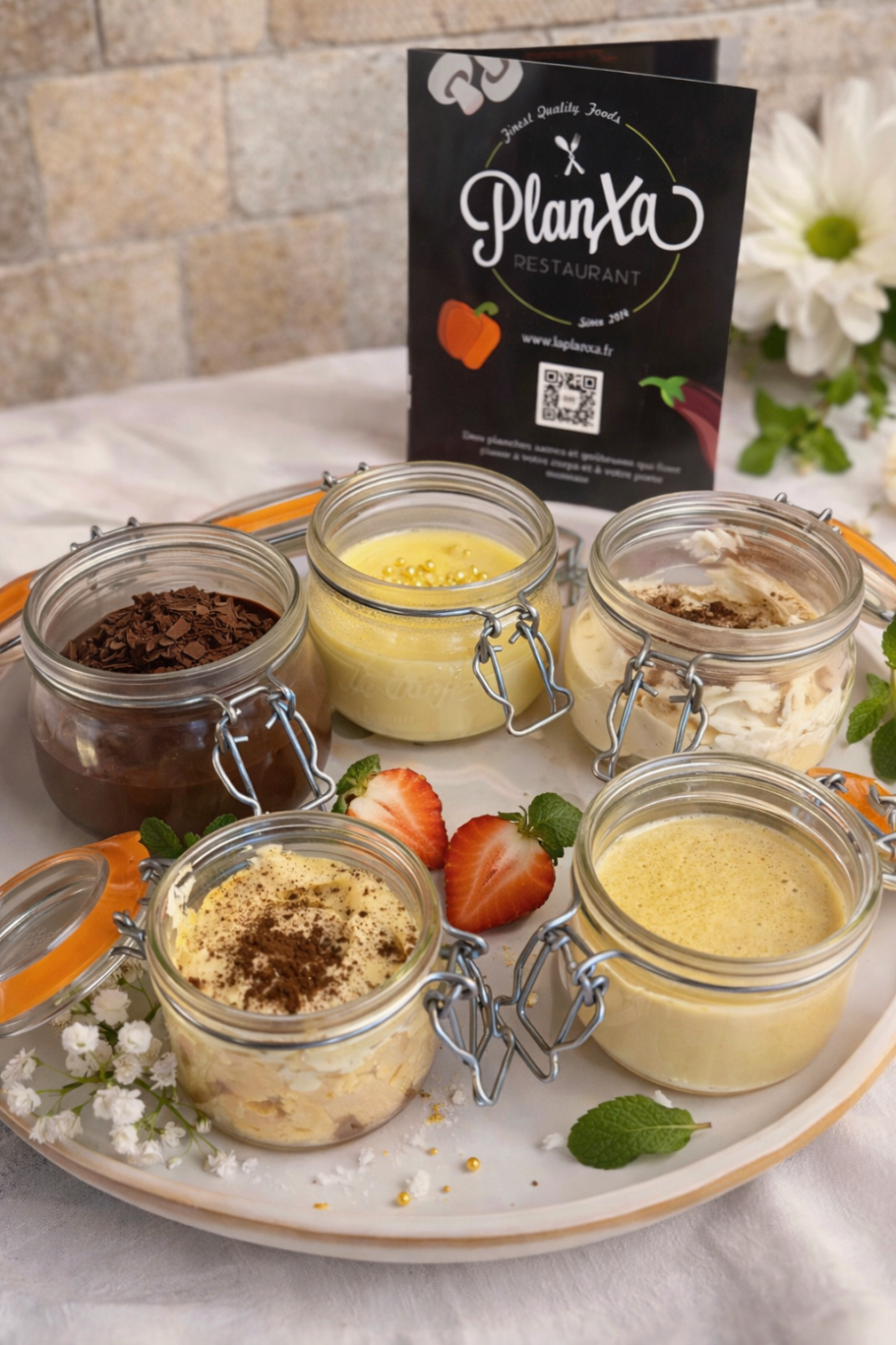 Tiramisu, Panna cota, crème caramel, Mousse au chocolat